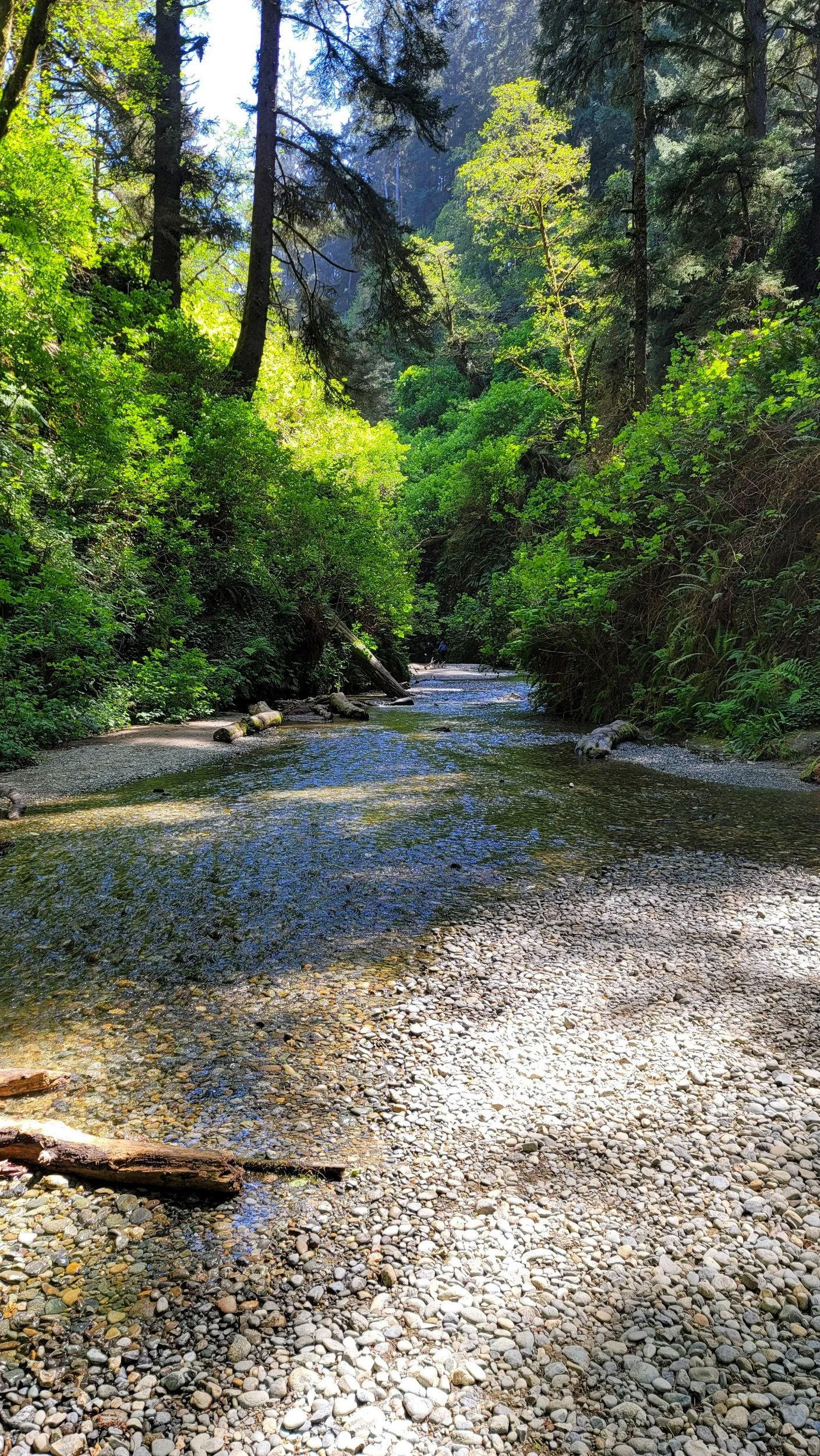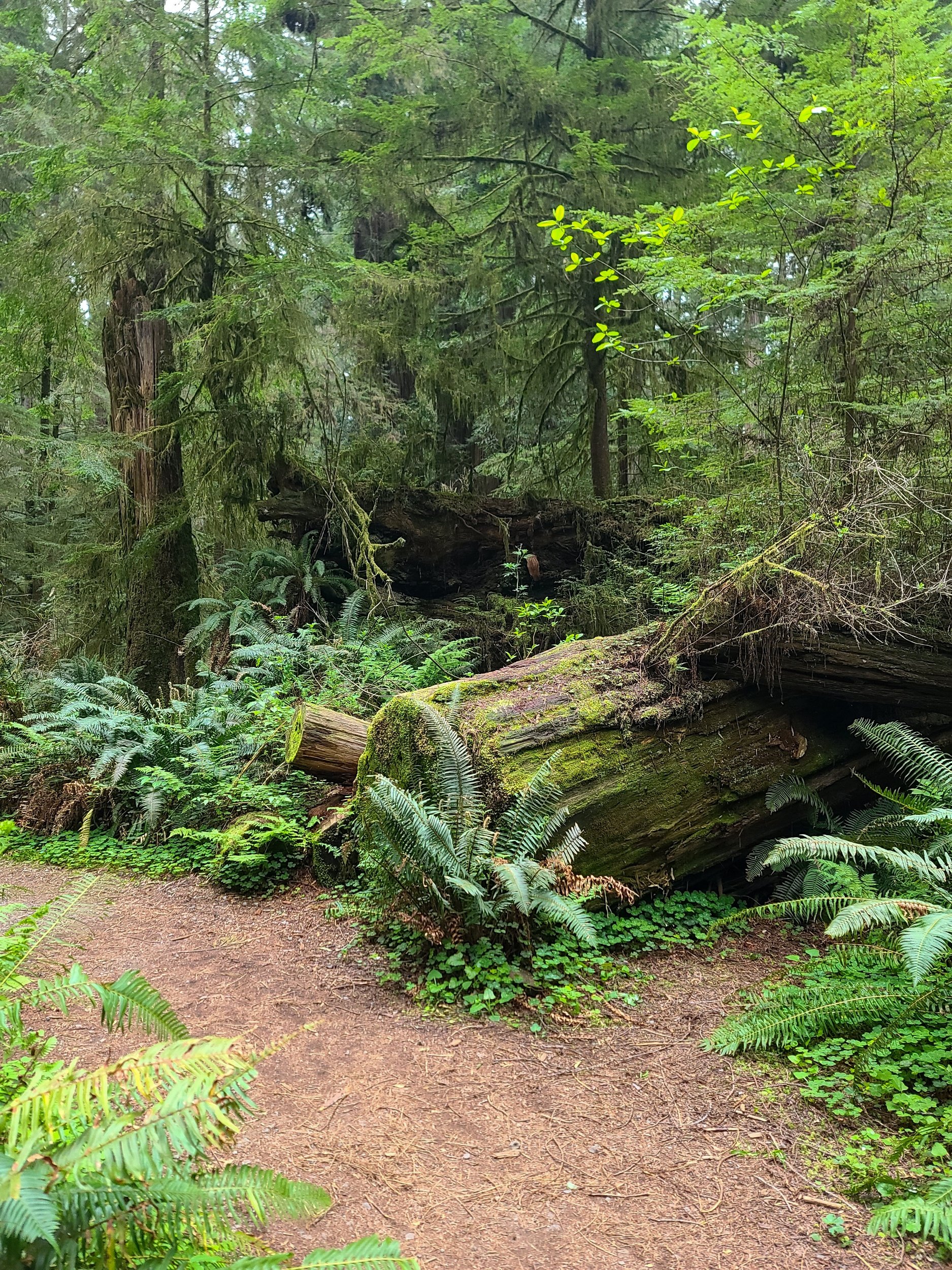 This is a fun, shady, easily accessible hiking trail behind the Prairie Creek Visitors Center. Flat, lowkey, with signage giving great information about the trees and local landscape, this is an easy win with kids. It was also a good spot to plan around lunchtime because we had picnic area access, easy bathroom access, and the kids had their Junior Ranger booklets to help them learn and navigate, while giving mom and dad a needed break to relax.