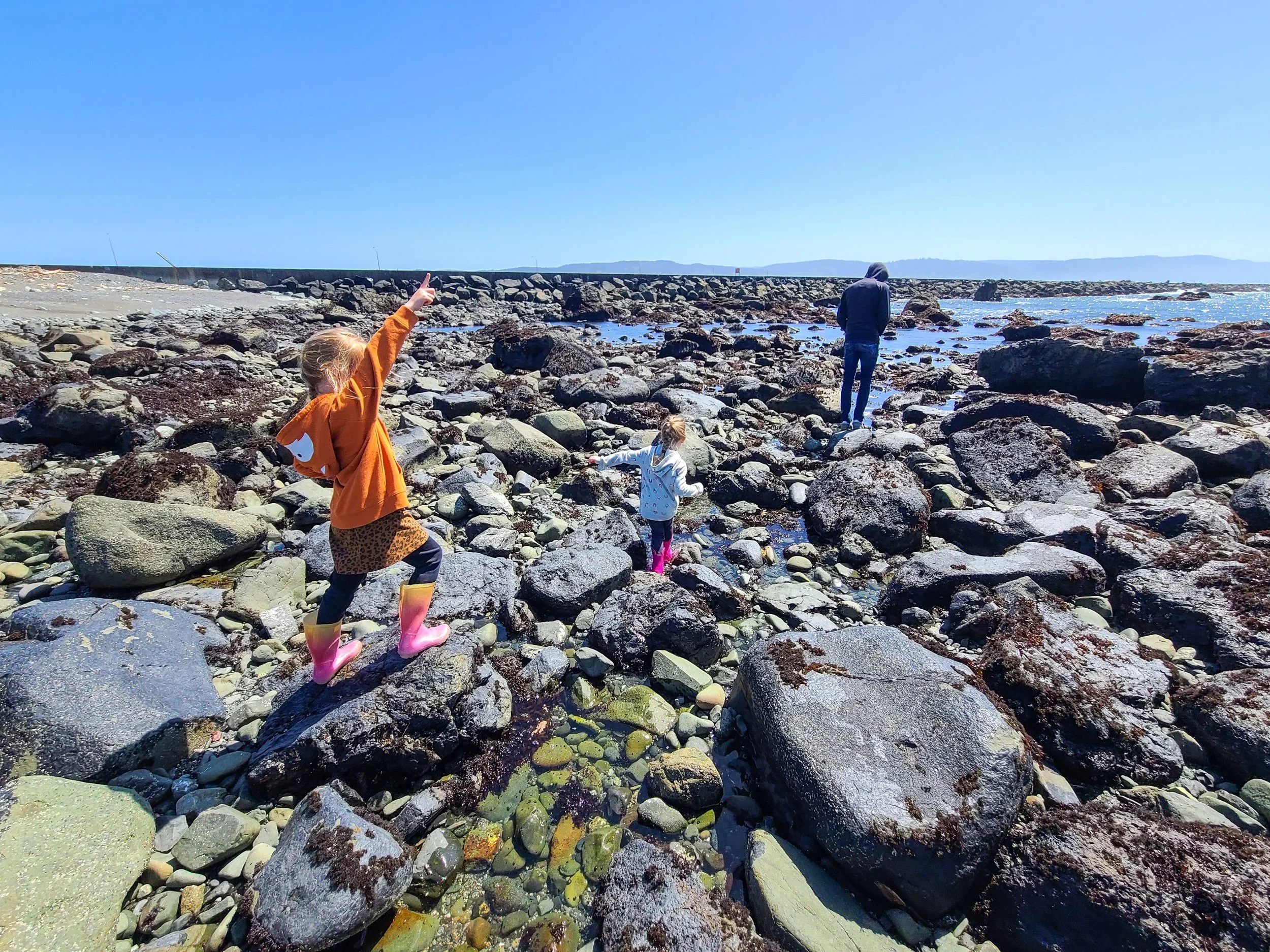 This was our biggest journey and longest drive for a trail. Please be aware that this trail is IN A RIVERBED. You will come out of the trail wet. We brought water shoes for all of us and we had extra clothes and towels in the car waiting for after. Our kids did really well, the water doesn’t get very deep until further in (depending on the time of year) and we were able to have them be fairly independent within our eyesight. We loved this journey but the water was freezing and we all had numb feet by the time we were heading back to the car (early April visit). This would be a great summer hike midday because it is shaded, cool, and near the coastline. There are outdoor bathrooms in the parking lot. This hike requires a permit, plan ahead if you want to go, especially during peak season.